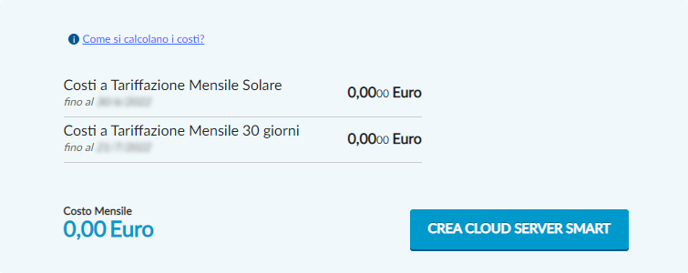 CREA CLOUD SERVER SMART" e dare conferma per procedere con la creazione.