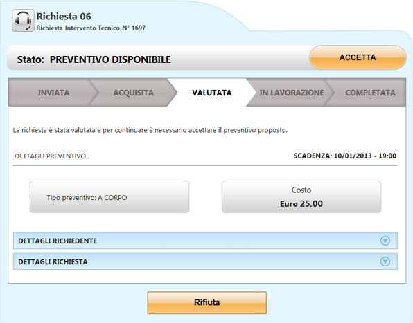 - presentare un preventivo per l'intervento - portando la richiesta al terzo stato "PREVENTIVO DISPONIBILE"